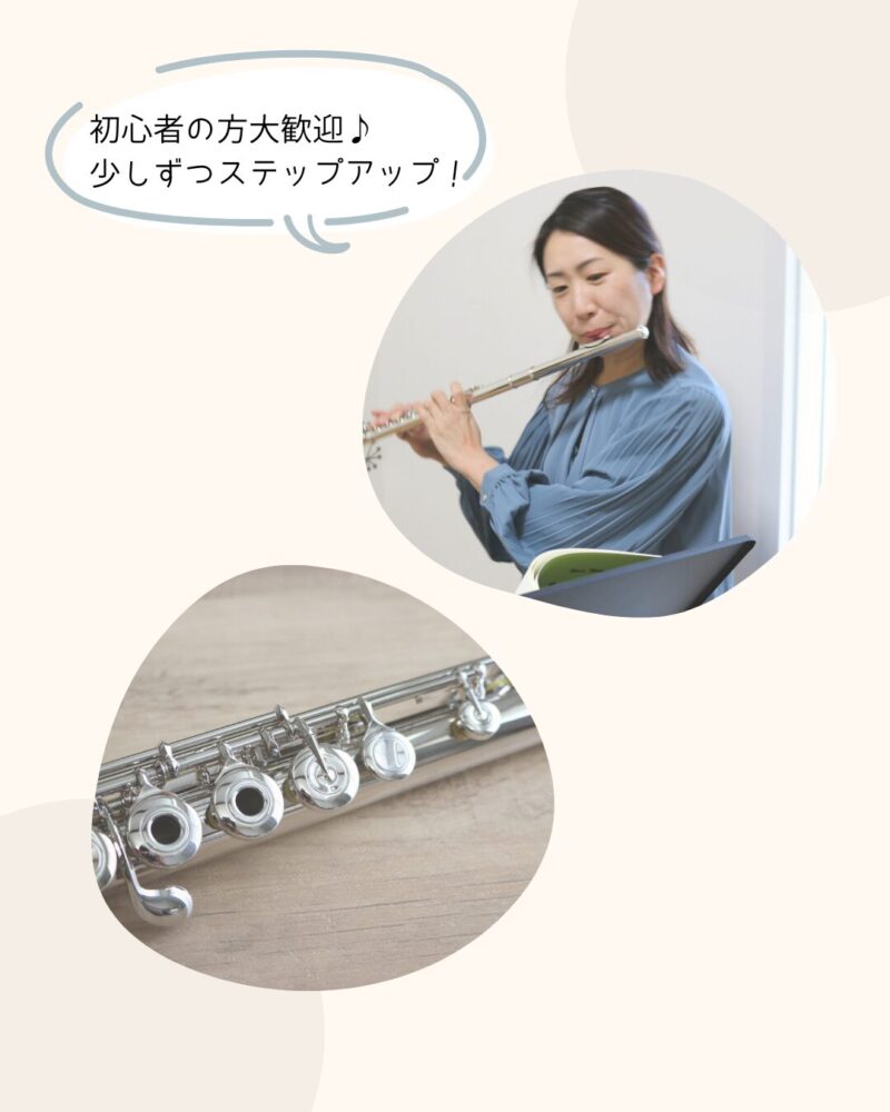 楽器の扱い方から構え方、そして音の出し方など、基礎の部分から丁寧にレッスンいたします。音楽の楽しさ、フルートの面白さを感じてもらえるようなレッスンを心がけております。
