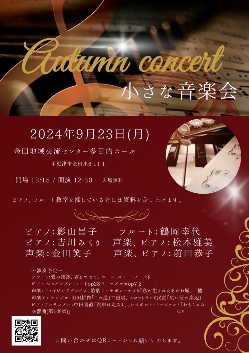 9/23(月)に木更津市の金田地域交流センターで演奏いたします♪
